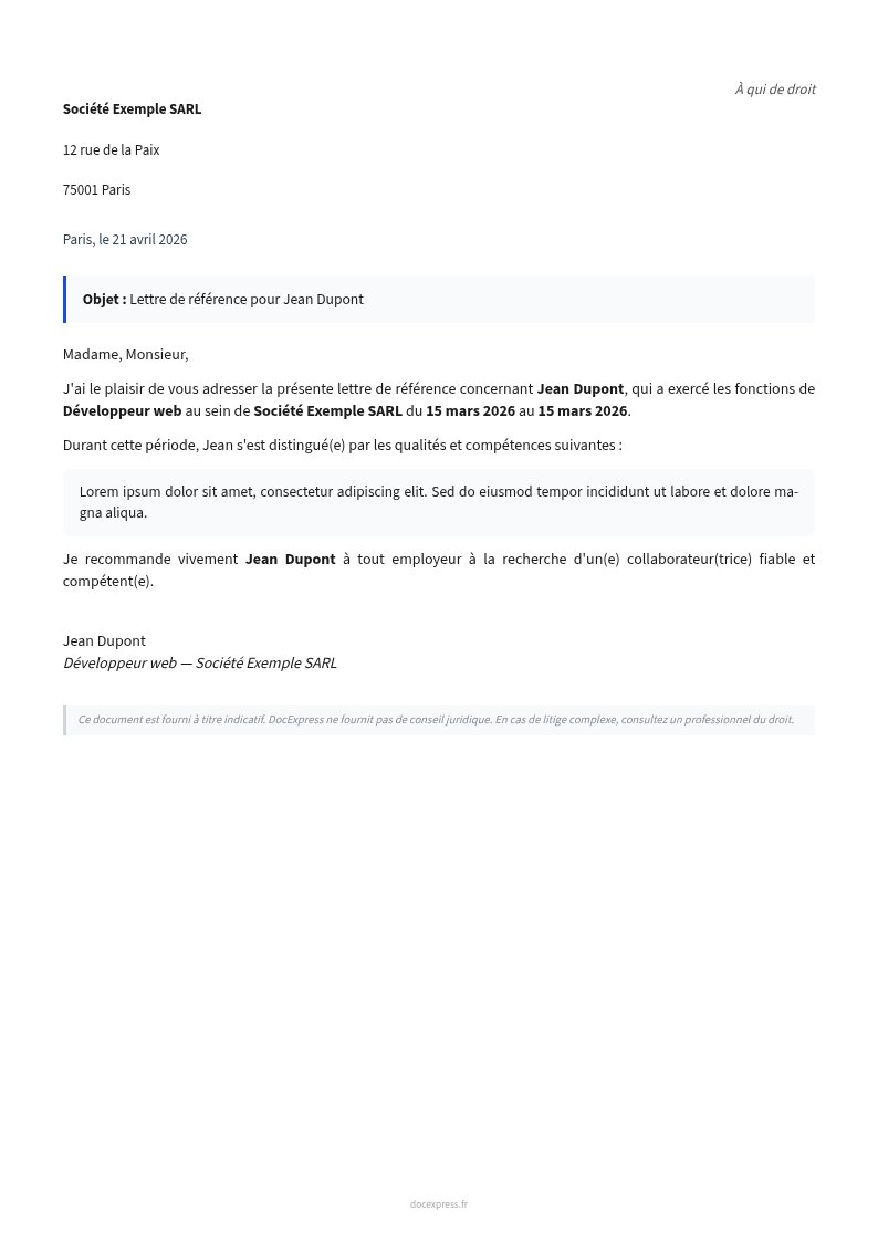 Lettre de référence employeur